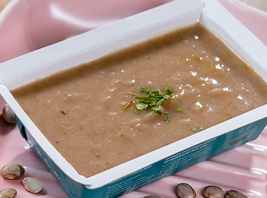 Para aquecer os pequenos! Produção sob demanda, entregue quente pronto para consumir. (Validade: 02 dias refrigerado). Receita cremosa, 100% natural com ingredientes frescos para bebes e crianças! Ingredientes: Leite de coco, batata doce, tâmara jumbo, cacau 100%.